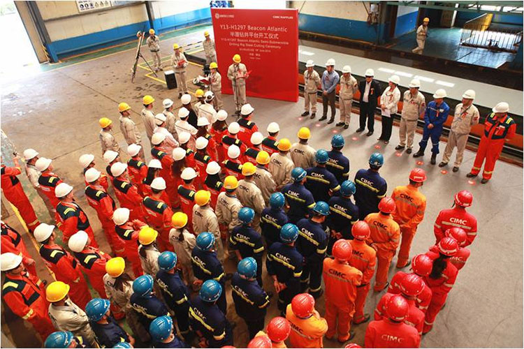 2014年6月18日上午,中集來福士為挪威Beacon 公司建造的北海深水半潛式鉆井平臺Beacon Atlantic在煙臺開工建造。這是中集來福士為挪威北海建造的第六座深水半潛式鉆井平臺,將于2016年交付。