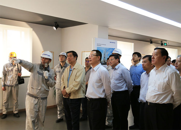 何立峰副主任一行在深水碼頭視察了正在建造中的COSLPROSPECTOR深水半潛式鉆井平臺(tái)。他認(rèn)真了解了該平臺(tái)的建造工藝、作業(yè)水深、鉆井功能、服務(wù)海域及建造周期,對(duì)公司已形成的從設(shè)計(jì)、建造、總裝及最終交付的能力給予充分肯定。他要求公司作為國內(nèi)海洋工程行業(yè)的龍頭企業(yè),要進(jìn)一步加強(qiáng)技術(shù)創(chuàng)新能力,不斷提升行業(yè)領(lǐng)先優(yōu)勢(shì)和國際競爭力,在深海領(lǐng)域爭取新突破,取得新業(yè)績。