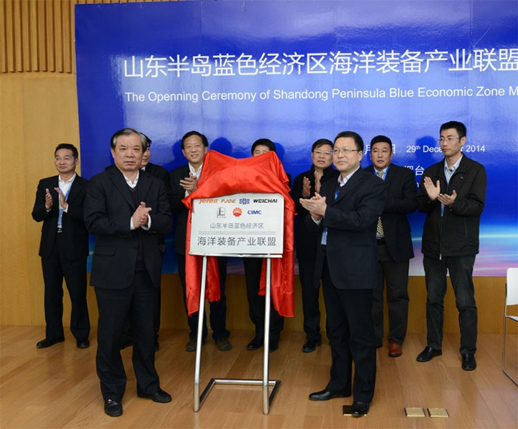 2014年12月29日,山東半島藍色經(jīng)濟區(qū)海洋裝備產(chǎn)業(yè)聯(lián)盟揭牌儀式在煙臺中集海洋工程研究院舉行。山東省區(qū)域辦副主任梁文躍,山東省區(qū)域辦藍區(qū)建設指導處處長韓恩澤,煙臺市政協(xié)副主席、市發(fā)改委主任王式亮,山東半島藍色經(jīng)濟區(qū)海洋裝備產(chǎn)業(yè)聯(lián)盟理事長、中集來福士總裁于亞等領導、企業(yè)家、專家出席儀式。