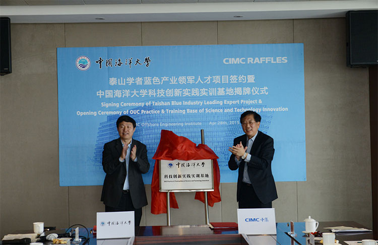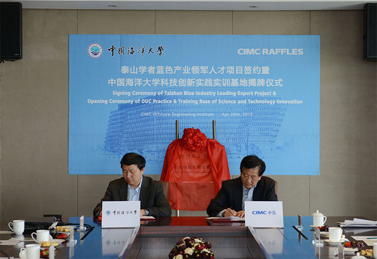 2015年4月28日,中集來福士同中國(guó)海洋大學(xué)在中集海洋工程研究院舉行了泰山學(xué)者藍(lán)色產(chǎn)業(yè)領(lǐng)軍人才項(xiàng)目簽約儀式暨中國(guó)海洋大學(xué)科技創(chuàng)新實(shí)踐實(shí)訓(xùn)基地揭牌儀式。