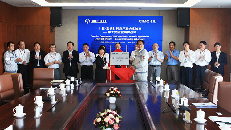 2015年5月22日,中集—寶鋼材料應(yīng)用聯(lián)合實(shí)驗(yàn)室揭牌儀式在煙臺(tái)中集海洋工程研究院舉行。山東省科技廳副廳長(zhǎng)于書良、煙臺(tái)市副市長(zhǎng)張廣波、烏克蘭國家科學(xué)院合作局局長(zhǎng)SERGIY MYAKUSHKO 、寶鋼股份副總經(jīng)理王靜、中集來福士總裁于亞等參加了揭牌儀式。