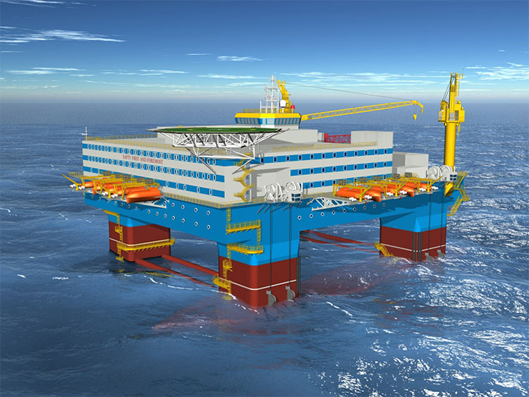 該平臺長106.45米,寬68.9米,定員人數(shù)600人,甲板使用面積可達3500平方米,最大吃水20米,排水量達37000噸,最大航速可達12節(jié),入級美國船級社。該平臺可以在全球除挪威北海之外絕大多數(shù)海域作業(yè)。
