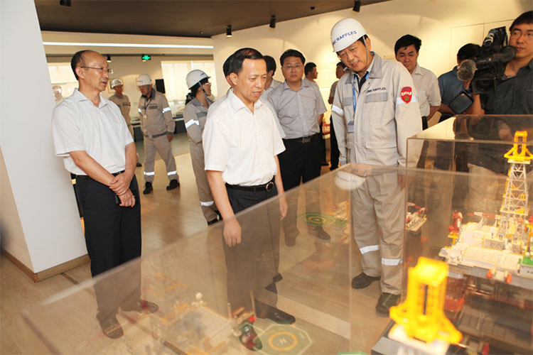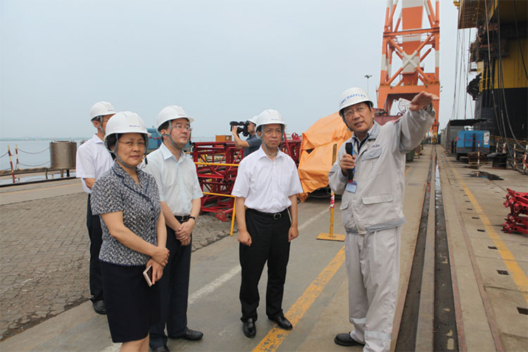 王書堅一行首先參觀了公司展廳。公司總裁于亞向王書堅匯報了中集來福士在建重點項目及已交付項目情況。隨后,王書堅一行來到現(xiàn)場,實地察看了正在建造中的D90超深水半潛式鉆井平臺和GM4D深水半潛式鉆井平臺。王書堅對中集來福士的發(fā)展給予充分肯定,他希望中集來福士繼續(xù)發(fā)揮行業(yè)龍頭作用,拉動產(chǎn)業(yè)聚集,帶動山東藍(lán)色經(jīng)濟(jì)更好更快發(fā)展。