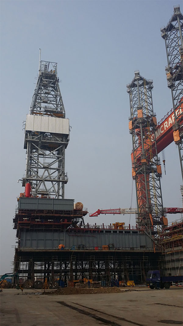 2015年8月18晚上,中集來福士第九座Super M2自升式鉆井平臺(tái)完成了懸臂梁稱重試驗(yàn),此次試驗(yàn)在國內(nèi)首次采用懸臂梁胎架上稱重,在稱重難度增加的情況下,節(jié)點(diǎn)達(dá)成較歷史同系列項(xiàng)目縮短了47天。完成懸臂梁稱重試驗(yàn)為后續(xù)的懸臂梁滑移和主船體下水打下了堅(jiān)實(shí)的基礎(chǔ)。