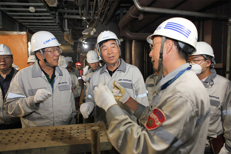 25日上午,郭會長一行參觀了中集海工院。在研發(fā)部聽取了力學(xué)分析、三維仿真設(shè)計、減震降噪及公司核心技術(shù)能力的介紹。郭大成會長在聽取了中集海工規(guī)劃定位、研發(fā)設(shè)計、關(guān)鍵技術(shù)支撐、國產(chǎn)化帶動和協(xié)同創(chuàng)新匯報后,對中集來福士在海洋工程特別是深海工程領(lǐng)域的創(chuàng)新突破給予充分肯定,并表示中集福士是我國船舶海工企業(yè)走出去的靚麗名片之一。他要求中集來福士始終瞄準(zhǔn)世界戰(zhàn)略需求,站在國際前沿思考問題,致力于從裝備制造型企業(yè)向技術(shù)服務(wù)型企業(yè)轉(zhuǎn)型。