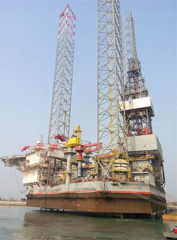 2015年12月8日,中集來福士承建的第二座400英尺自升式鉆井平臺在龍口基地完成站樁作業(yè)。全船插樁、站樁過程僅用40分鐘,氣隙2米。