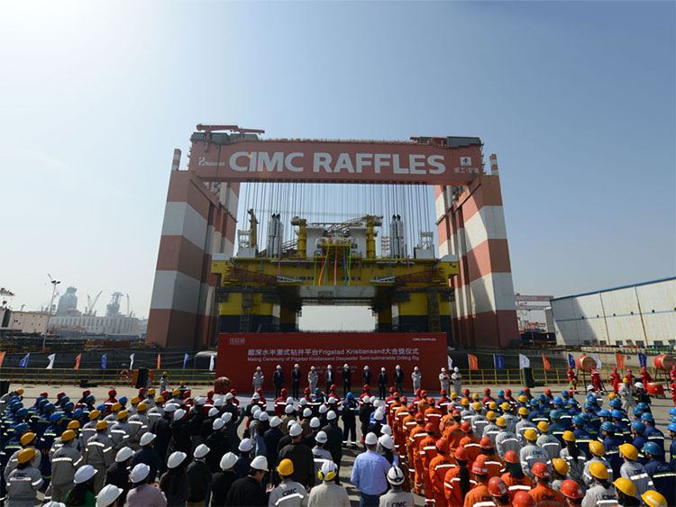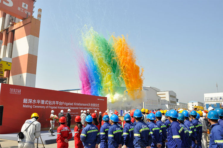 2016年3月30日上午10時(shí),中集來(lái)福士為挪威福瑞斯泰公司建造的第二座超深水雙鉆塔半潛式鉆井平臺(tái)Frigstad Kristiansand在煙臺(tái)基地完成合攏。