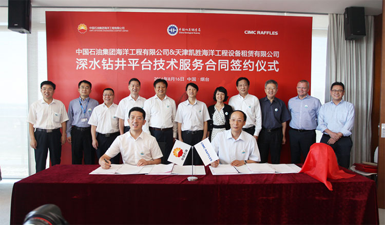 2016年8月16日,中國(guó)石油集團(tuán)海洋工程有限公司(簡(jiǎn)稱“中油海”)與煙臺(tái)中集來(lái)福士海洋工程有限公司(簡(jiǎn)稱“中集來(lái)福士”)在煙臺(tái)簽署了D901#超深水鉆井平臺(tái)技術(shù)服務(wù)合同。中國(guó)石油集團(tuán)公司總經(jīng)理助理王鐵軍、中油??偨?jīng)理劉圣志、中集集團(tuán)副總裁于亞、中集來(lái)福士總裁王建中等出席簽約儀式。該平臺(tái)交付后,將為中油海提供海上能源勘探服務(wù)。
