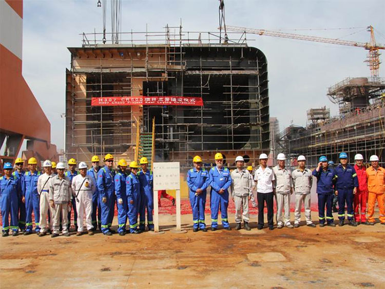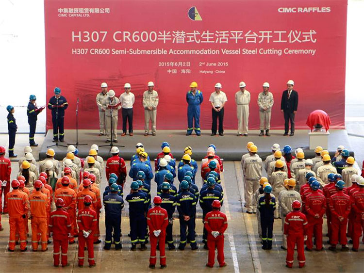 2015年9月14日上午9點58分,CR600半潛式生活平臺目在海陽中集來福士舉行鋪龍骨儀式,龍骨鋪設節(jié)點的完成,項目將全面進入分段合攏階段。