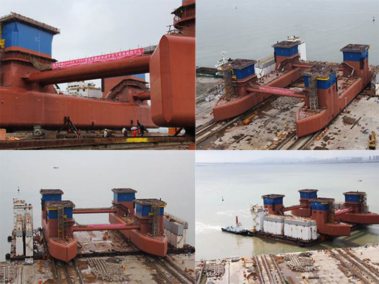 2016年9月14日早上6時40分,由中集來福士自主研發(fā)設計建造的半潛式生活平臺CR600上船體在海陽基地開始下水滑移,12時08分成功滑移到“德浮”2號駁船。歷時5小時,CR600項目上船體順利下水。