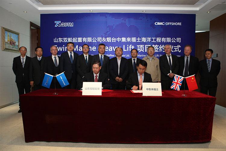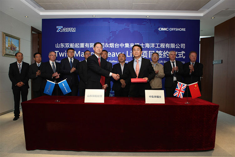 2016年11月18日,山東海洋投資有限公司(簡稱“山東海投”)旗下山東海洋工程裝備有限公司(簡稱“山東海工“)所屬的山東雙船起重有限公司(SDTM)與煙臺中集來福士海洋工程有限公司(簡稱“中集來福士”)簽署TML(雙船重吊起重系統(tǒng))項目建造合同,這是依據(jù)全球最先進拆解理念“雙船起重和三船聯(lián)動作業(yè)”建造的新式海上平臺拆解項目,主要用于海上固定式平臺的安裝和拆解,交付后將于英國北海海域作業(yè)。山東省國防科工辦主任王超英、山東省國資委副主任尹剛、山東海投董事長包劍英、中集來福士總裁王建中等出席簽約儀式。山東海投總經(jīng)理、山東海工董事長范成海與中集來福士總裁王建中代表雙方簽約。