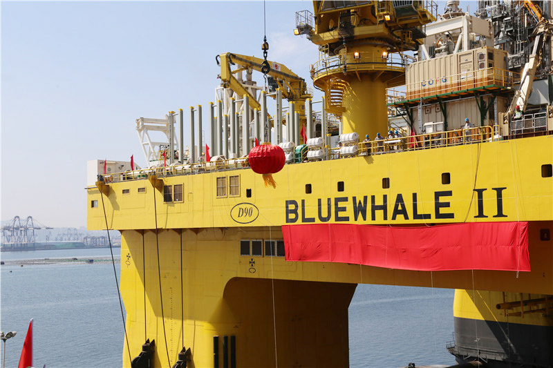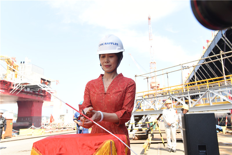 9月26日,在中集來(lái)福士煙臺(tái)基地深水碼頭,“藍(lán)鯨2號(hào)”正式命名。