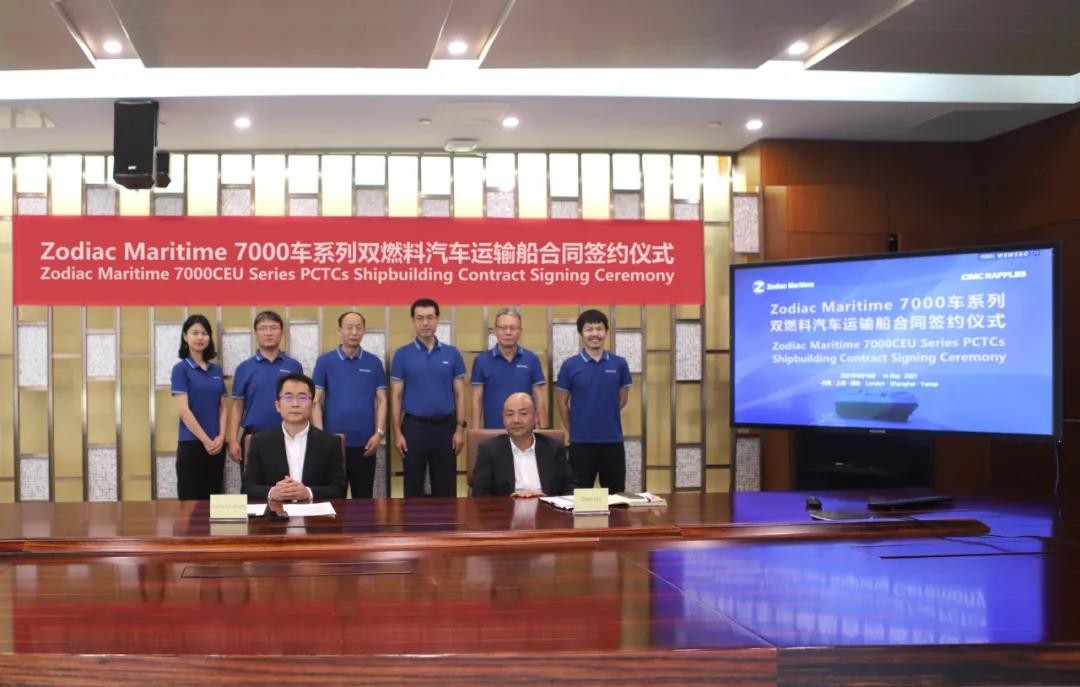 近日,中集來福士與總部位于摩納哥的國際航運公司Zodiac Group通過“云簽約”,簽訂4艘確認(rèn)及多條可選船7000車雙燃料汽車運輸船EPC總包建造合同。這是中集來福士今年在滾裝船領(lǐng)域的又一次突破,進一步夯實了在國際滾裝船市場的競爭力。Zodiac Group公司董事長Eyal Ofer、中集來福士CEO&總裁王建中以及雙方管理和項目團隊代表出席簽約儀式。