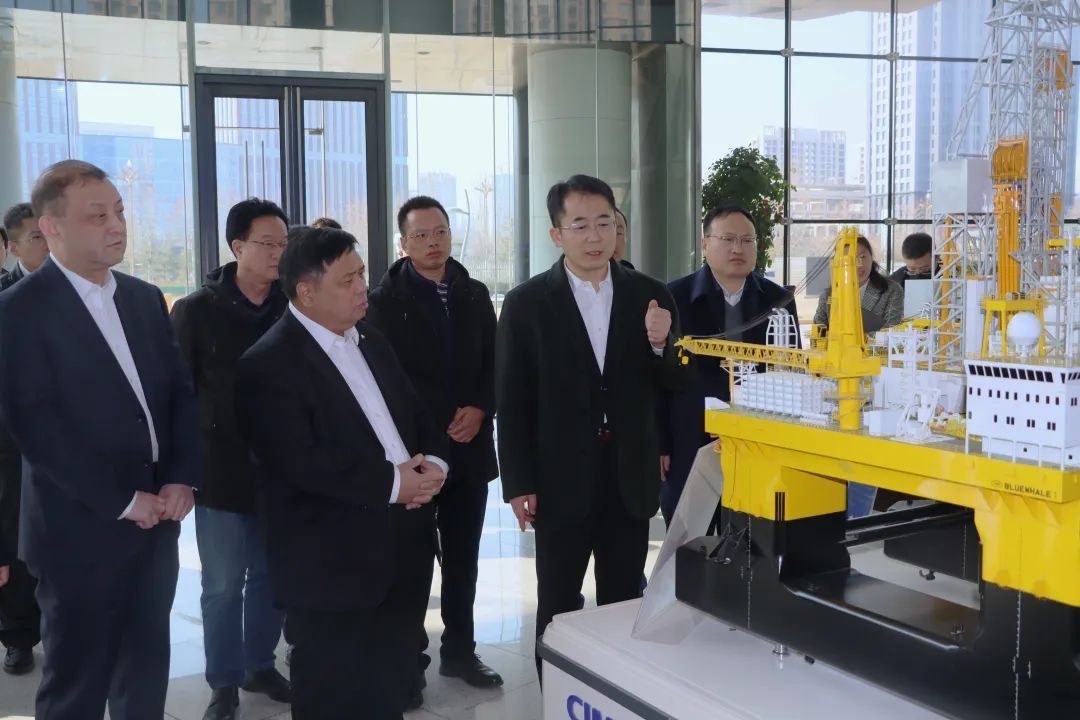 簽約儀式后,港航局等一行于下午到煙臺中集來福士建造基地參觀調(diào)研,在中集海洋工程研究院進(jìn)行會談,就有關(guān)項(xiàng)目合作前景進(jìn)行了深入探討,并對后續(xù)對接聯(lián)絡(luò)機(jī)制的建立達(dá)成一致。