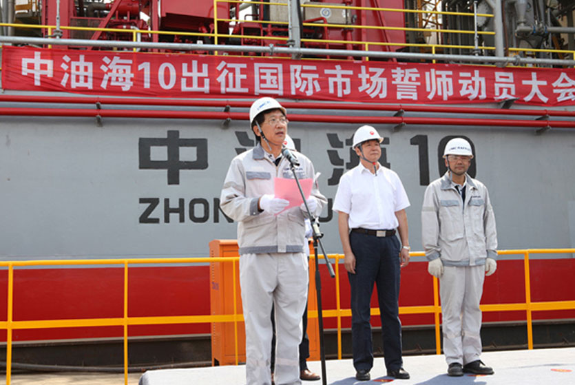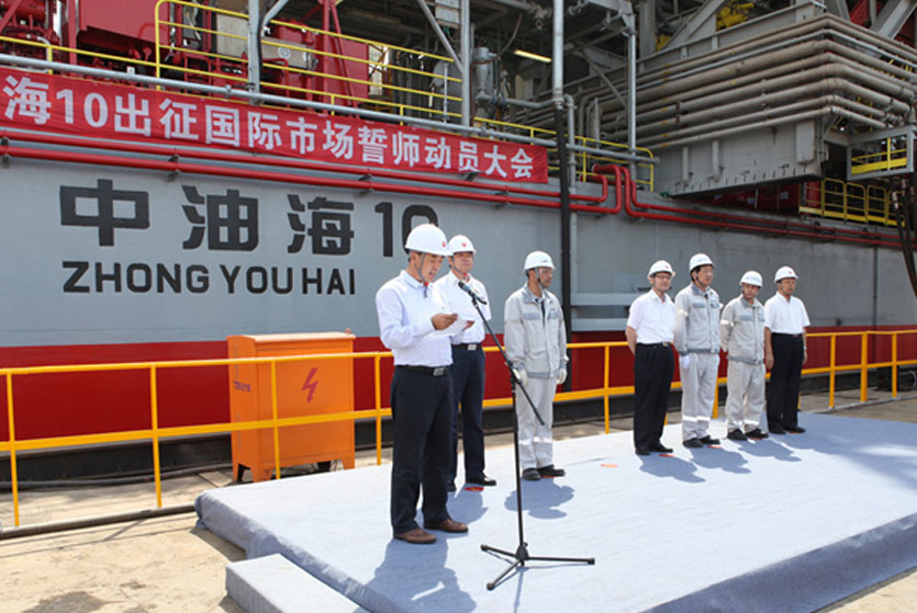 9月5日上午10時30分,中油海10平臺交付儀式在煙臺中集來福士2號碼頭舉行。出席儀式的有中油??偨?jīng)理黃立功,副總經(jīng)理張運通,總經(jīng)理助理、鉆井事業(yè)部經(jīng)理尹會存,總經(jīng)理助理、安全副總監(jiān)馬寶金,中集來福士總裁于亞,副總裁趙暉、劉燕嘉以及參與項目改造工程的工程技術(shù)人員80多人。